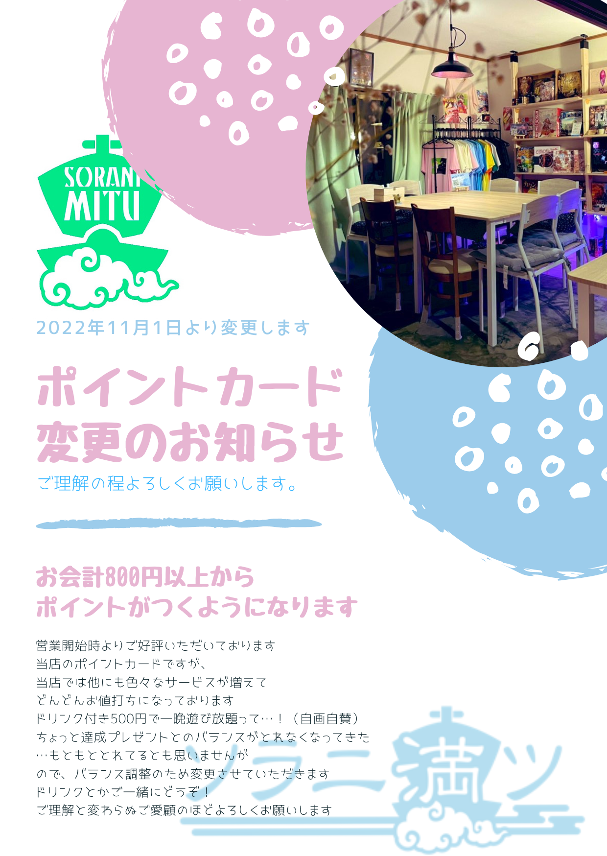 - 5ヶ月前2025年06月29日 14時10分頃料金システム変更のお知らせこんにちは奈良町のボードゲームスペース「ソラニ満ツ」です7月1日より料金システムが変更になります価格表の下にあるように、こっそり合言葉を言ってもらえると料金がお値打ちになります合言葉はソラニ満ツYouTubeチャンネルの動画内にて発表しています動画をよく見ると探しやすくはなってるので、合言葉を...85ページビュー