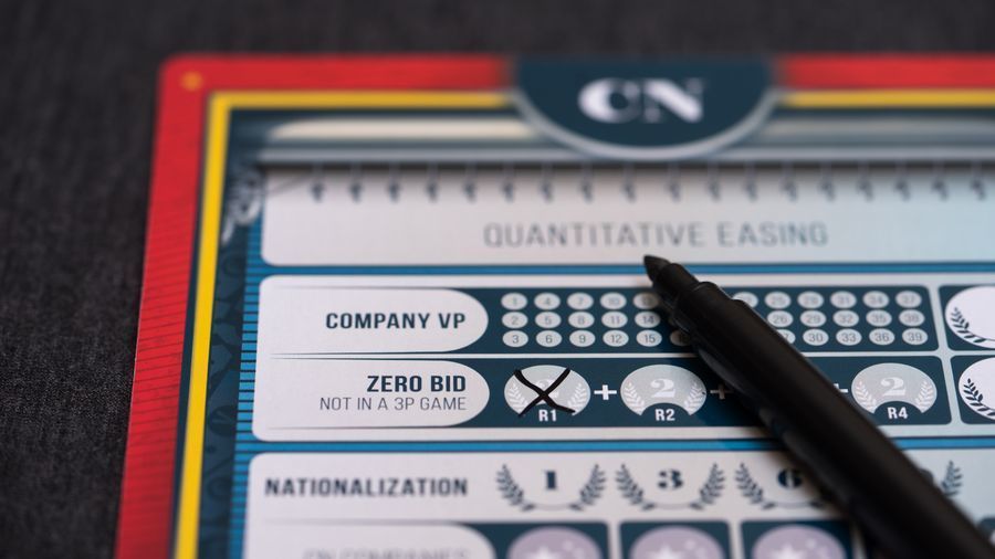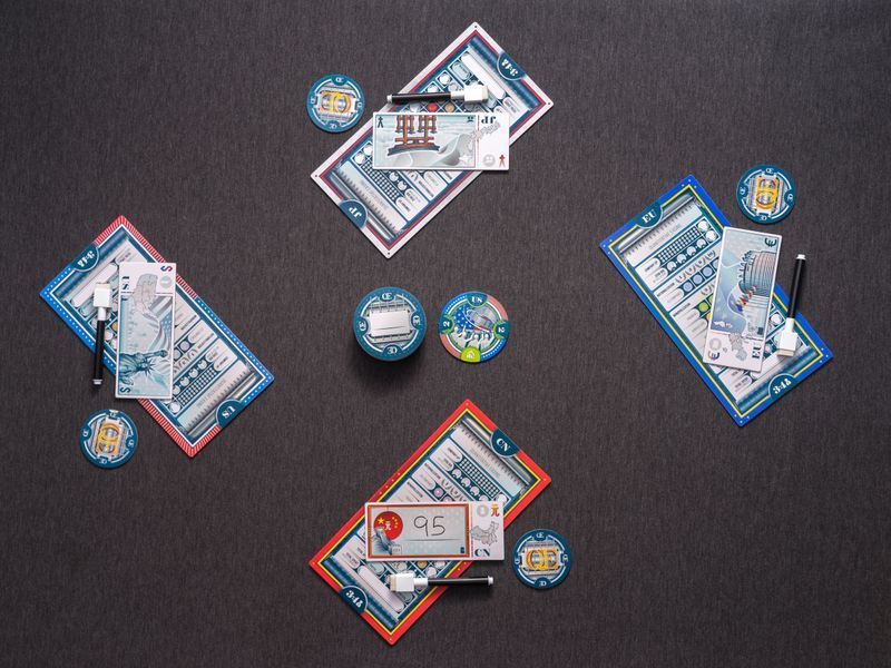 プレイヤー達は自分のボードにマーカーで好きな入札額を記入して、非公開競りを行います。