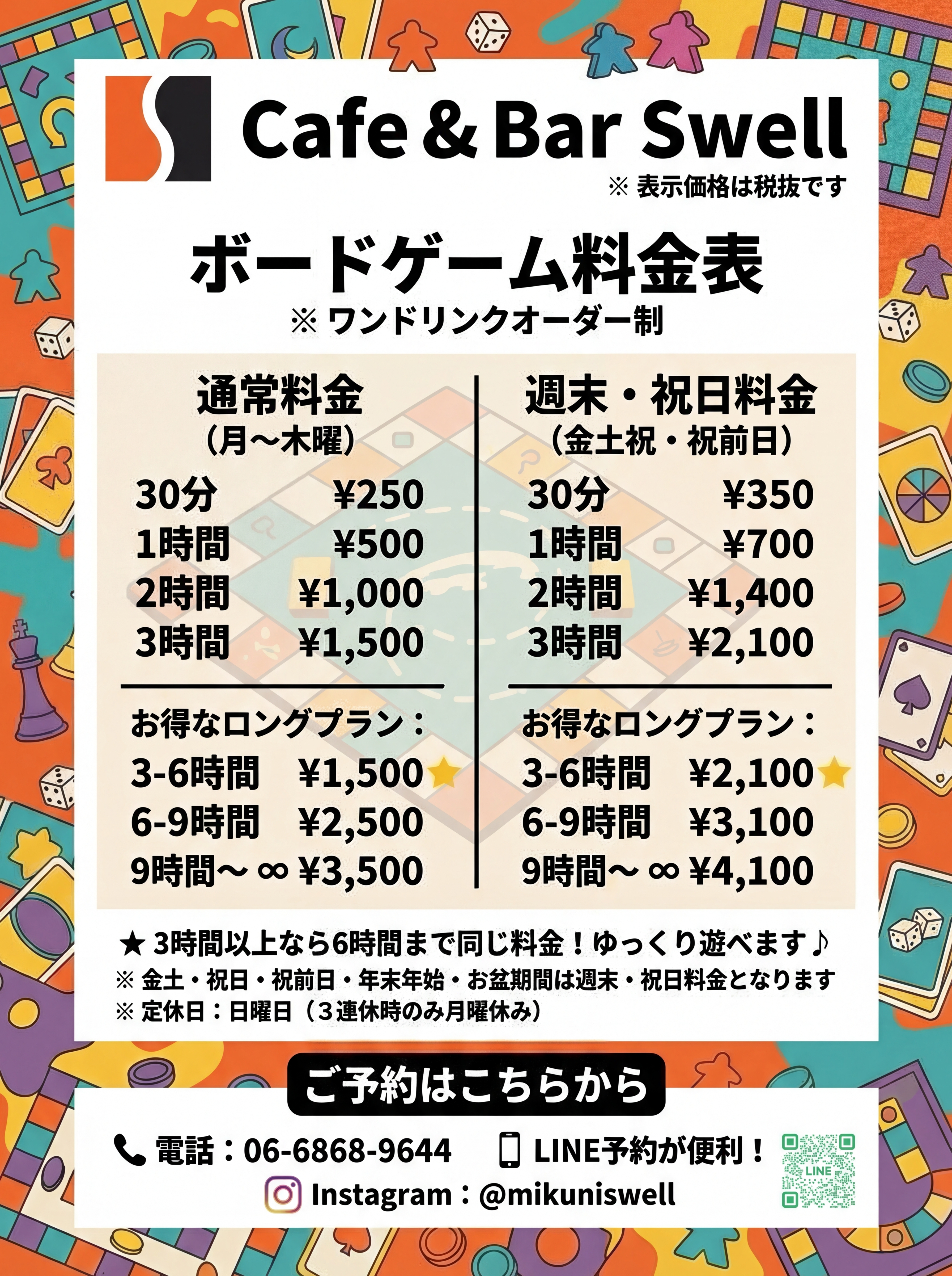 | 備考 | 9時~17時にボードゲームプレイは可能ですが、ランチなどで手が回らずインストなどが出来ないことが多いです! |