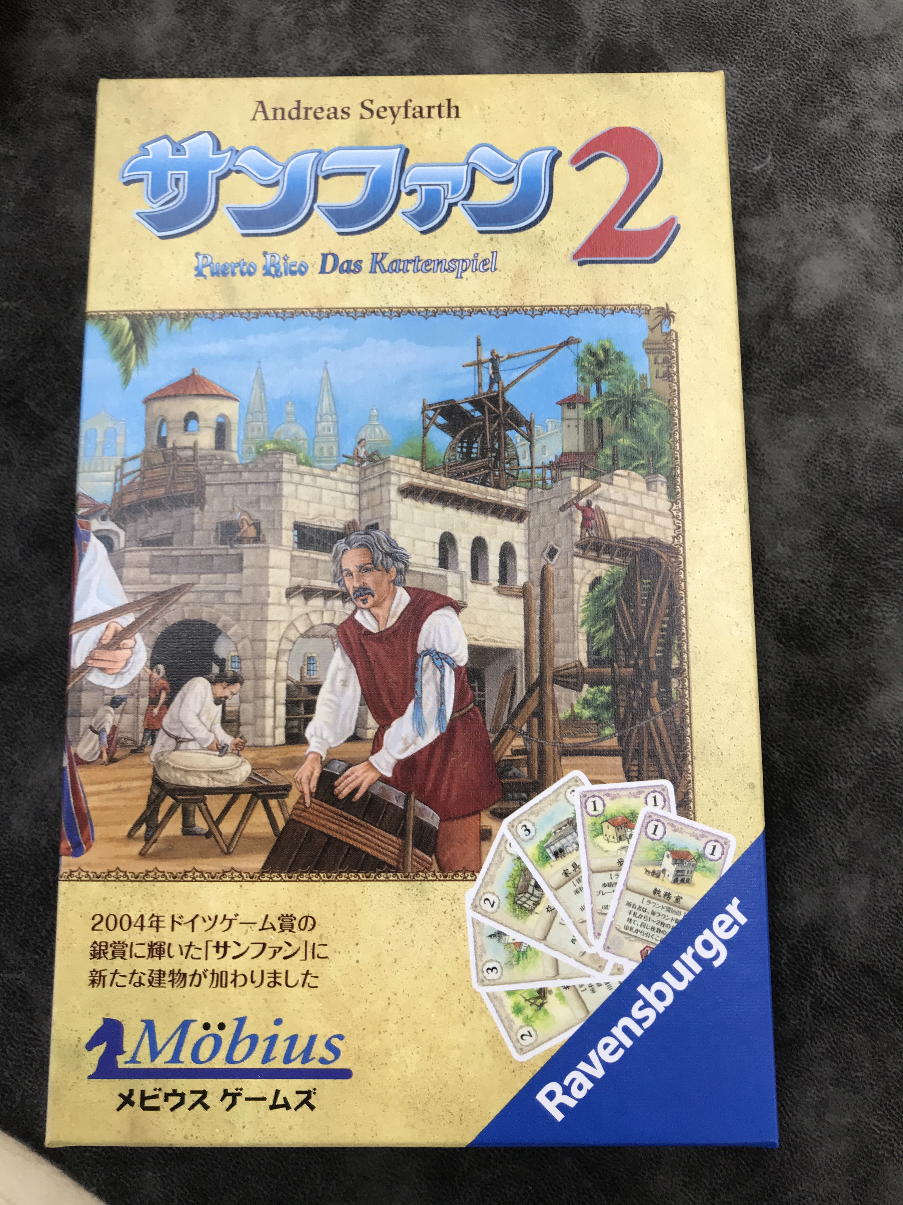 名作ボードゲーム、プエルトリコをカードゲームにしたような、新しい世界で富と名声を得ることが目的のカードゲームです。