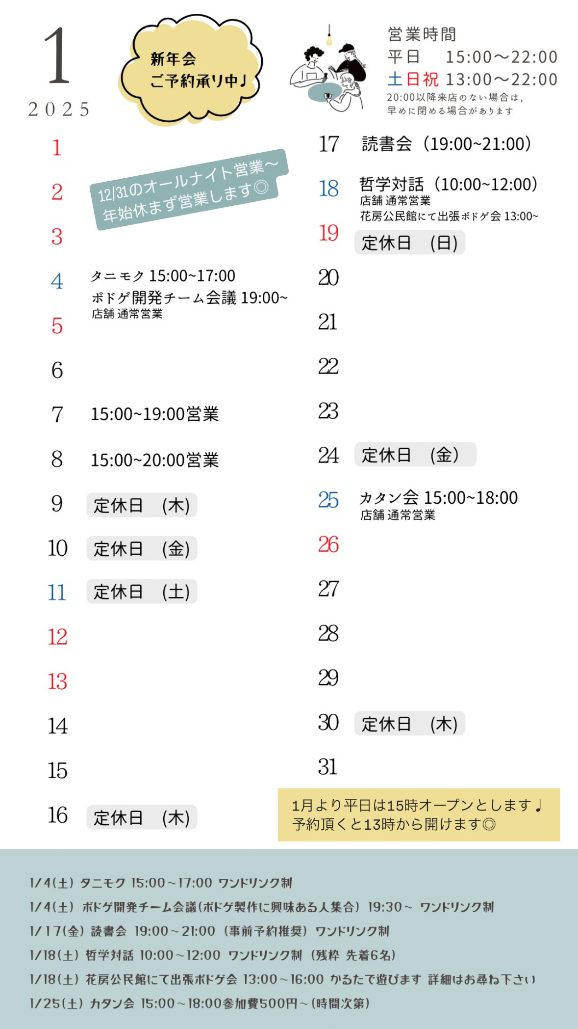 1月営業カレンダー