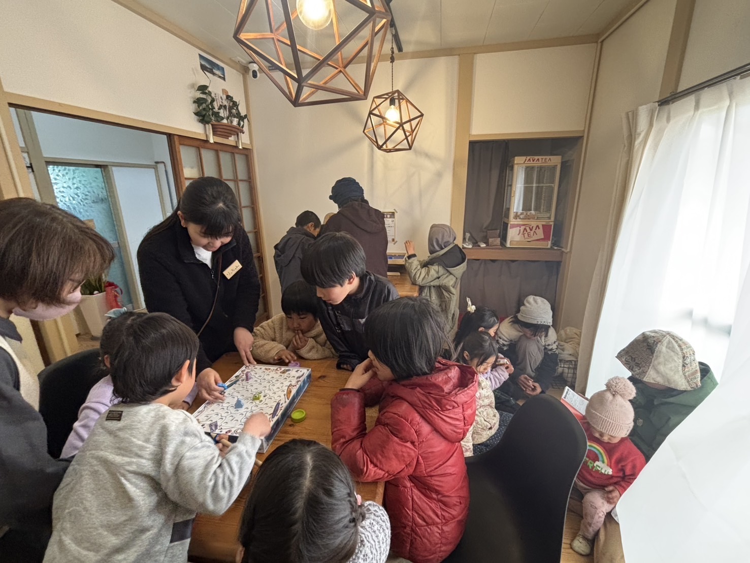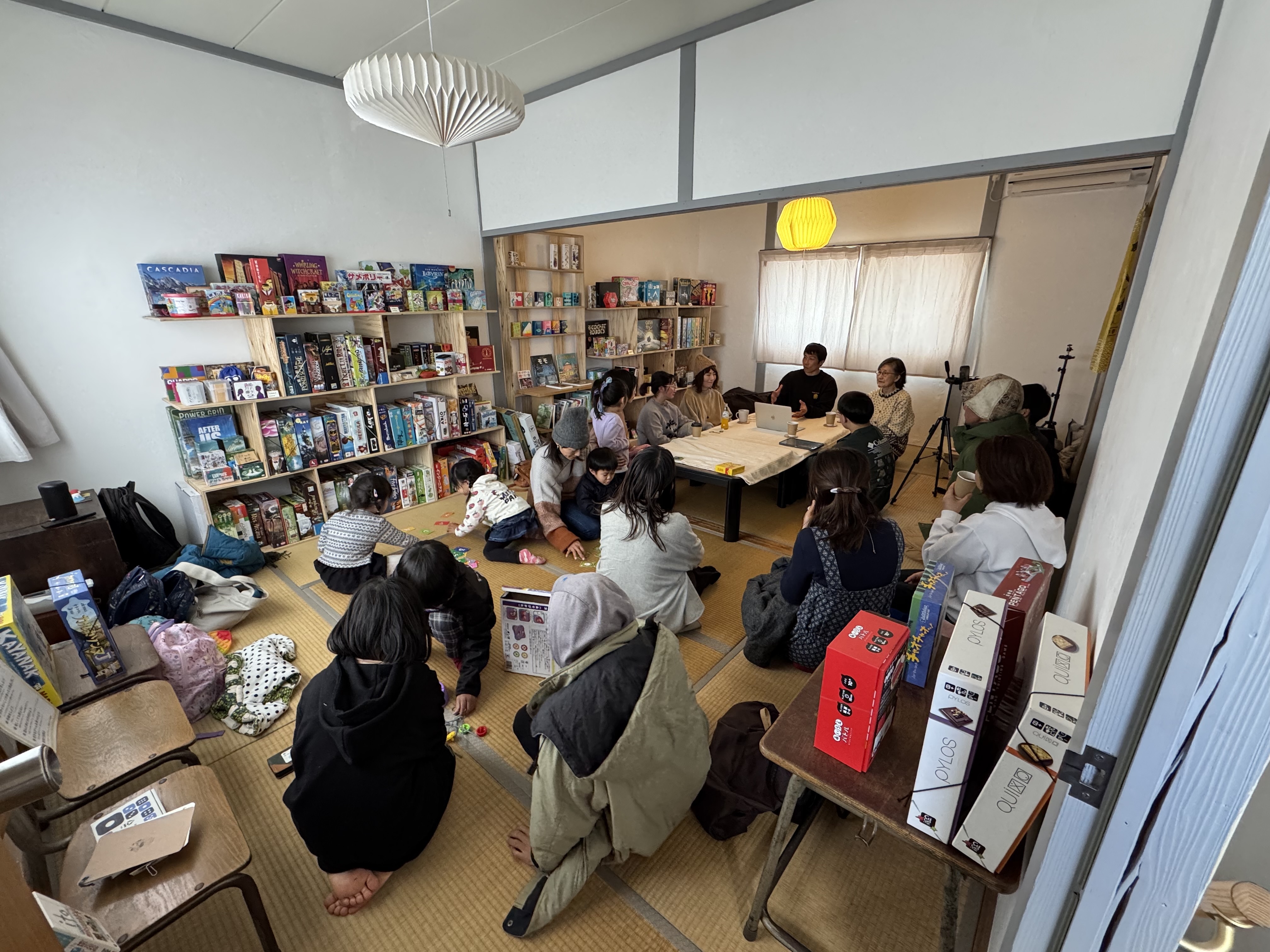 2階奥は、大人の深い会話が繰り広げられ、1階と周辺で子どもたちはボードゲームを楽しみ、しんきんぐらしい活用をしていただきました。