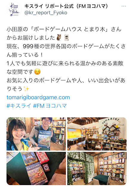 - 2年以上前2023年03月09日 23時54分頃YouTubeのボードゲームあそびばチャンネルさんでご紹介頂きました‼️✨湘南台のボードゲームショップあそびばさんの「ボードゲームあそびばチャンネル」さんで「とまり木」を取り上げて頂きました✨✨公私共にお世話になっているあそびばさん、取材はドキドキでしたがとても楽しかったです😆‼️本当に感謝です‼️✨84ページビュー