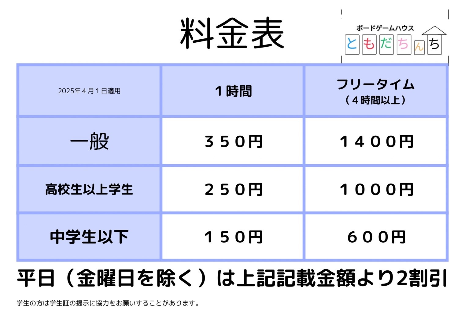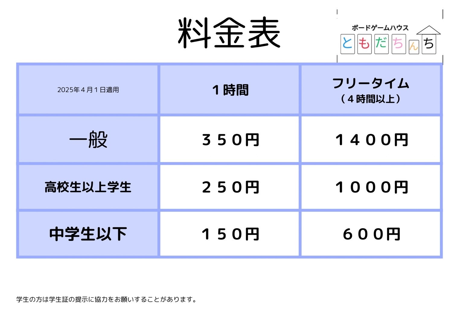 料金/メニュー表