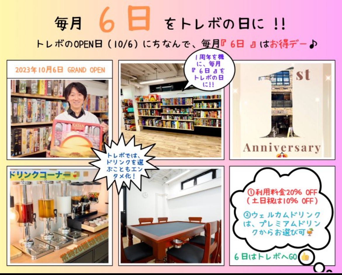 1周年を記念して、毎月6日を「トレボの日」と設定!毎月6日はトレボへGO!