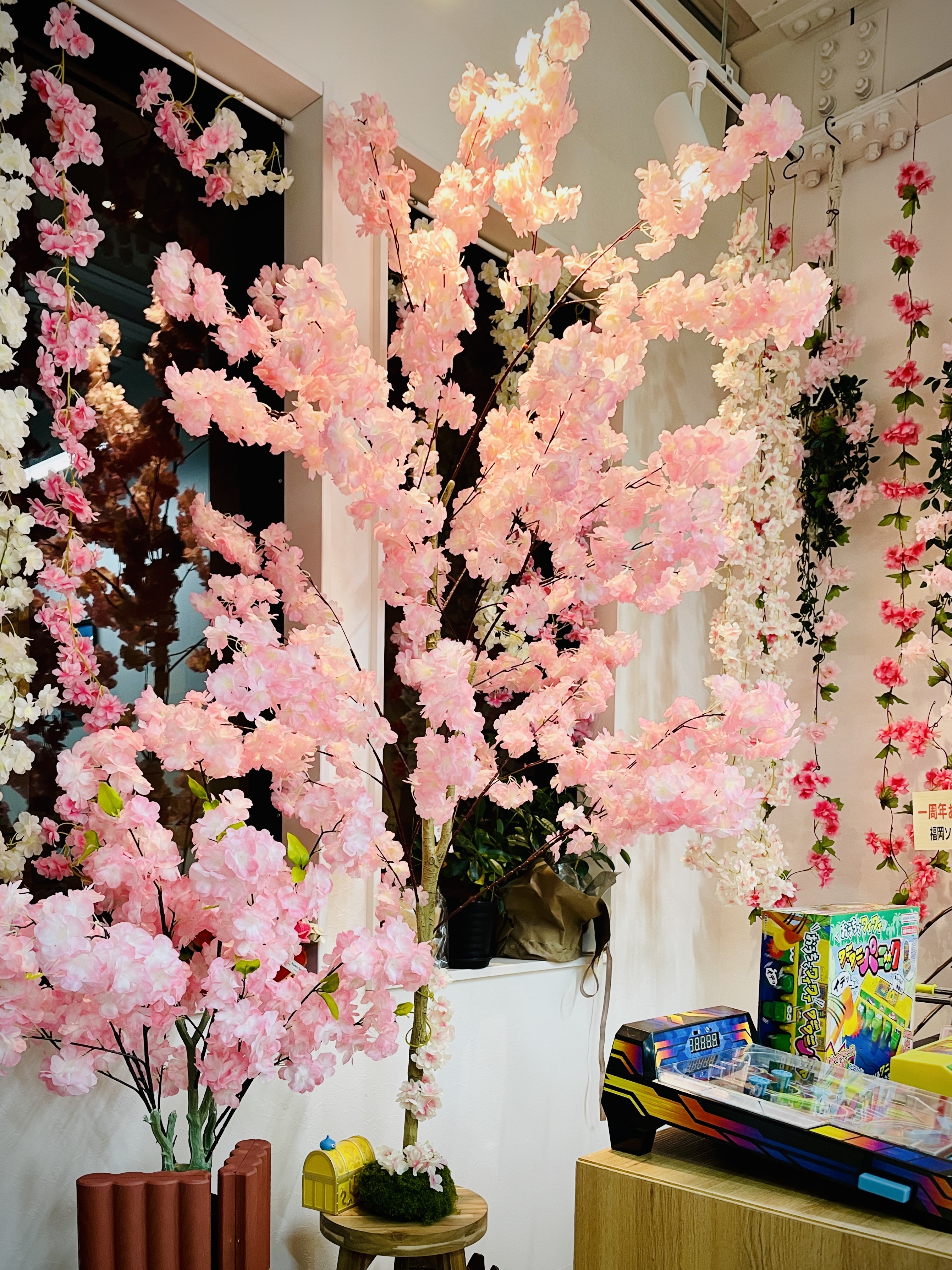 季節を感じられるコーナー(写真は春ver)は、お花見をイメージして桜が咲いています。笑