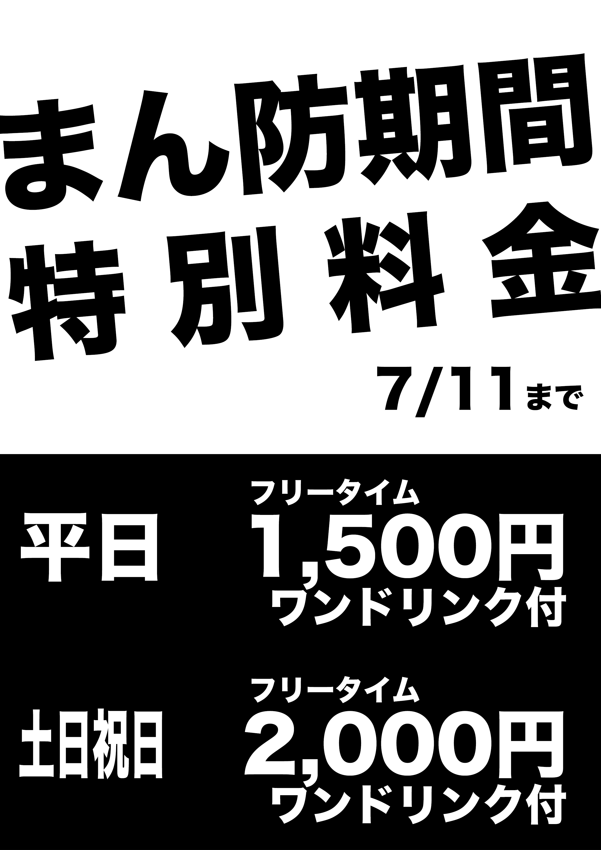- 4年以上前2021年06月20日 11時35分頃【お知らせ】6/21以降の料金と営業時間についてこんにちは!バンキッシュです!いつも当店をご利用くださりありがとうございます。6/21以降の営業時間等についてお知らせいたします。6/20までの料金と営業時間を継続いたします。期間:6/21(月)~7/11(日)◆ご利用料金平日フリータイム1,500円ワンドリンク付土日祝日フリータイム2,00...235ページビュー