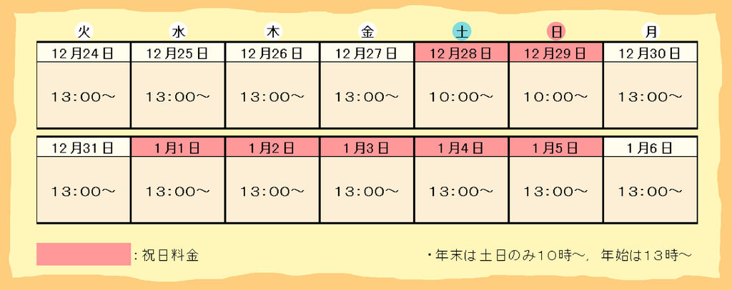 なお元日の営業は18時までとなっておりますのでお気をつけください。