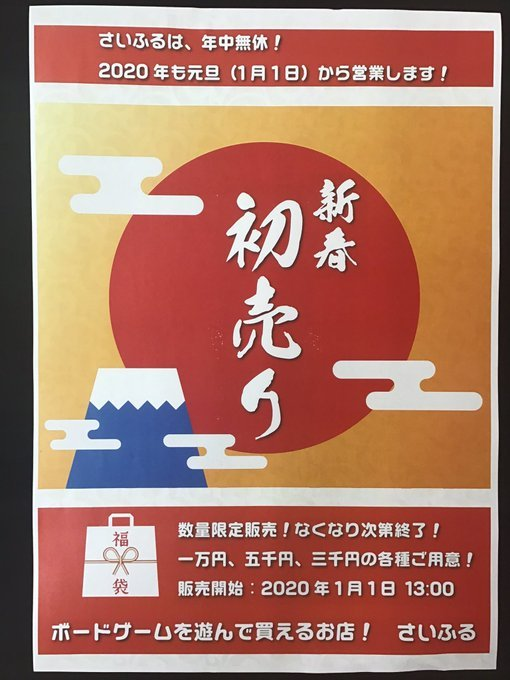 令和二年の営業は1月1日13時からオープンさせていただきます。