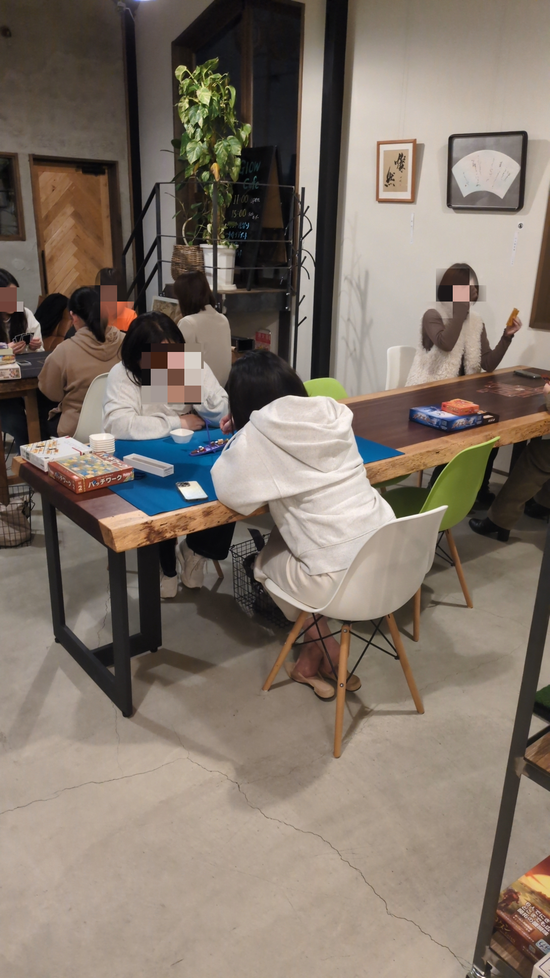 大垣のボードゲームカフェ黒やぎさんです!🎩🐐 先日の夜は、たくさんの女性のお客様にご来店いただき、店内は大盛り上がりでした!😆💕 初めてボードゲームカフェに来たという方も多く、最初は「ボードゲームって難しそう…」「ルールを覚えられるかな?」と少し緊張している様子でしたが、いざゲームが始まると…みんなで大笑い!🤣✨
