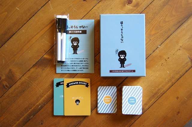 「違う。そうじゃない」は、二択のヒントカードとスペシャルカードを手がかりに、出題者の答えを導きだすゲームです。