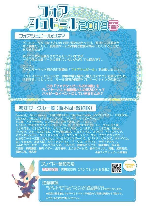 当日遊べるページは #フォアシュピール2019春 のタグで、ボドゲーマ内検索も可能です。